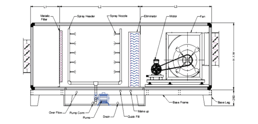 An Air Washer is an evaporative cooling system that utilizes water as a medium to cool the air efficiently. We manufacture a wide range of air washers in various capacities to suit different requirements and industrial applications.
